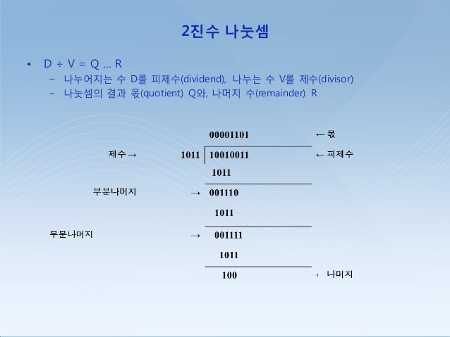- 뺼샘 연산을 덧셈 연산으로 할 수 있다 (2의 보수를 취한다음 더하면 된다)