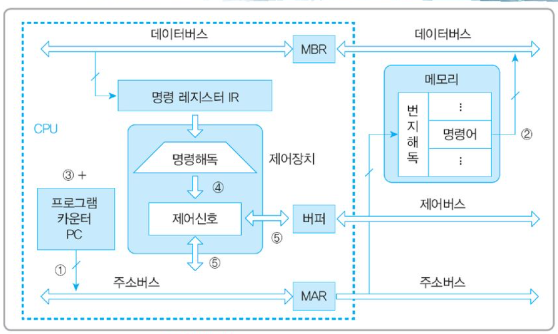 - 명령어 실행(execution) : 명령어 실행에 필요한 CPU 내외부 제어신호를 발생시킴