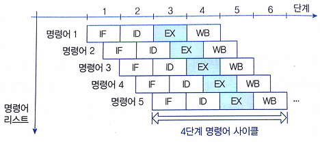 CPU 처리성능 향상을 위해 Instruction 처리 과정을 여러 단계로 세분화하는 병렬처리 기법