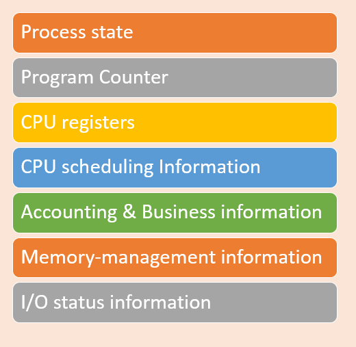 PCB에는 다음과 같은 정보들을 포함 하고 있다. (운영체제마다 포함 정보가 다를 수 있음)