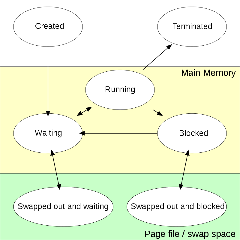 - swap-out : ready -> suspended ready / blocked -> suspended blocked / running -> suspended ready