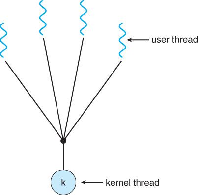 - System Call 등으로 인해 커널 스레드가 중단 되면 모든 스레드가 중단 된다(프로세스 자체가 중단)