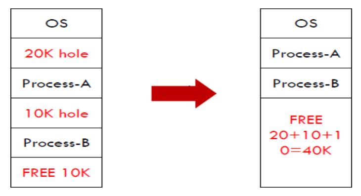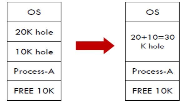 압축(compaction) : 사용중인 영역과 빈 영역을 각각 한쪽으로 몰아 빈 영역들을 하나로 모으는 것